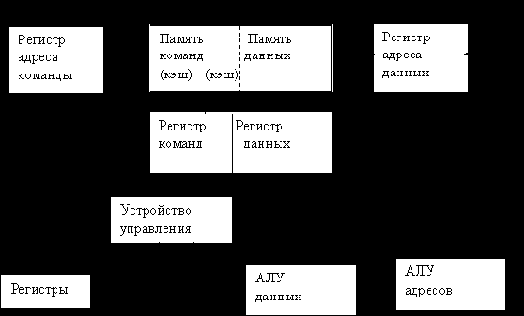 - гарвардская архитектура - появляется возможность совмещения выборки из памяти данных и команд, исключается случайное использование данных в качестве команд и наоборот.